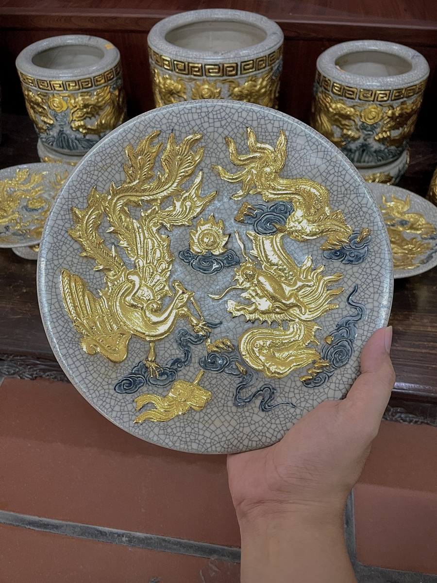 Tham khảo chi tiết mẫu Đồ thờ men Rạn Gạo Nếp đắp nổi trong Bộ