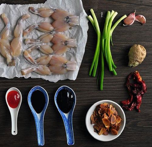 Bước 2: Tẩm ướp thịt ếch cùng với hành tỏi và bằm ớt, thếm chút gia vị sau: 1/2 muỗng canh đường, 1 muỗng cafe canh bột ngọt, 2 thìa dầu hào, 2 muỗng canh dầu mè, 2 muỗng canh sốt Kung Pao, 2 muỗng xì dầu, 1 muỗng hạt nêm, một chút rượu và rắc hạt tiêu rồi trộn đều, tẩm ướp khoảng 1-2 tiếng cho thịt ếch được ngấm gia vị