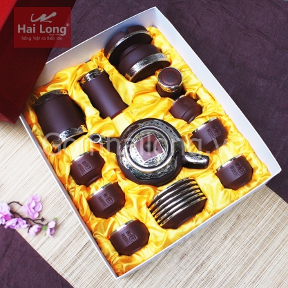 Để pha được ấm trà thơm ngon, theo quan niệm từ xừa thì cần hội tụ đủ 5 yếu tố: “Nhất thủy, Nhì trà, Tam pha, Tứ ấm, Ngũ quần anh”. Và bộ ấm trà là yếu tố không thể thiếu trong các yếu tố trên. Với bộ ấm trà tử sa cao cấp, không chỉ dùng để pha trà và thưởng trà thơm ngon mà còn là quà biếu sếp ý nghĩa trong ngày tết. Bộ ấm trà tử sa để tiếp khách, với họa tiết tinh xảo thủ công 100% tại Bát Tràng sẽ là điểm nhấn cho không gian phòng trà của gia đình sếp.