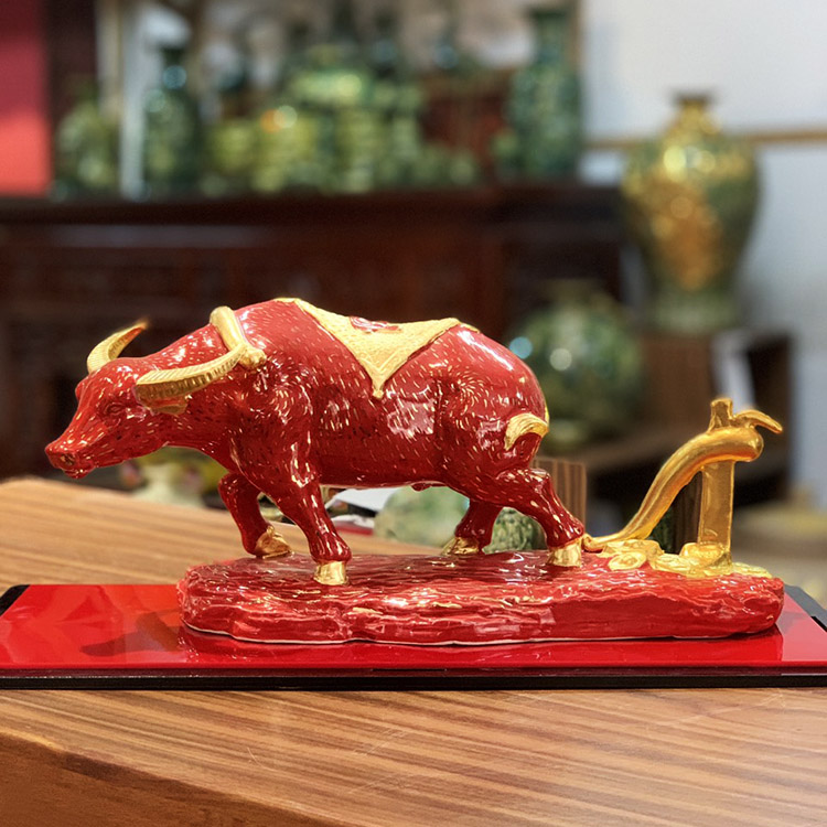 Trong khả năng tài chính của gia chủ, nếu có điều kiện thì nên bài trí một linh vật Trâu phong thủy vẽ vàng hoặc dát vàng (mạ vàng). Bởi với ánh sáng màu kim sẽ giúp thu hút vượng khí, sự nghiệp gia chủ thăng tiến nhanh chóng, tài lộc dồi dào.