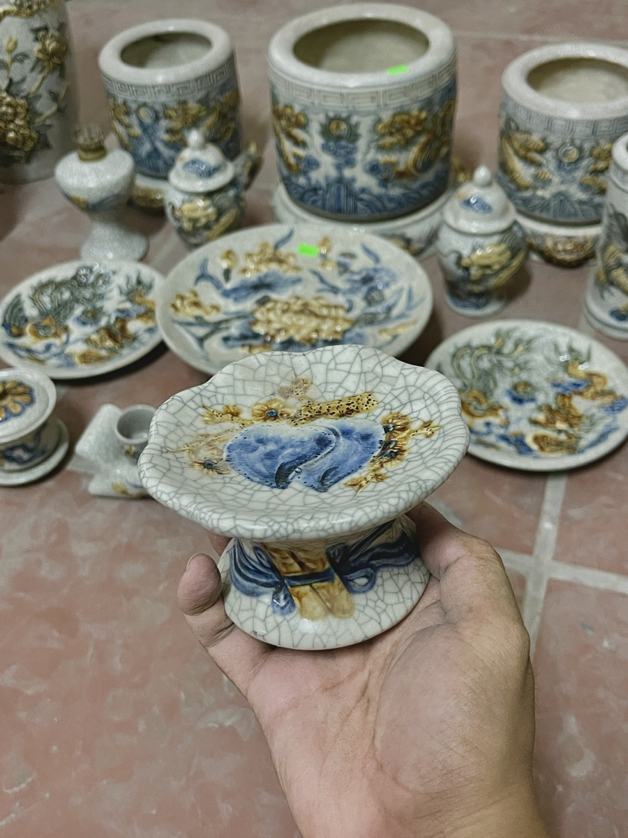 Tham khảo chi tiết mẫu Đồ thờ men Rạn Gạo Nếp đắp nổi trong Bộ