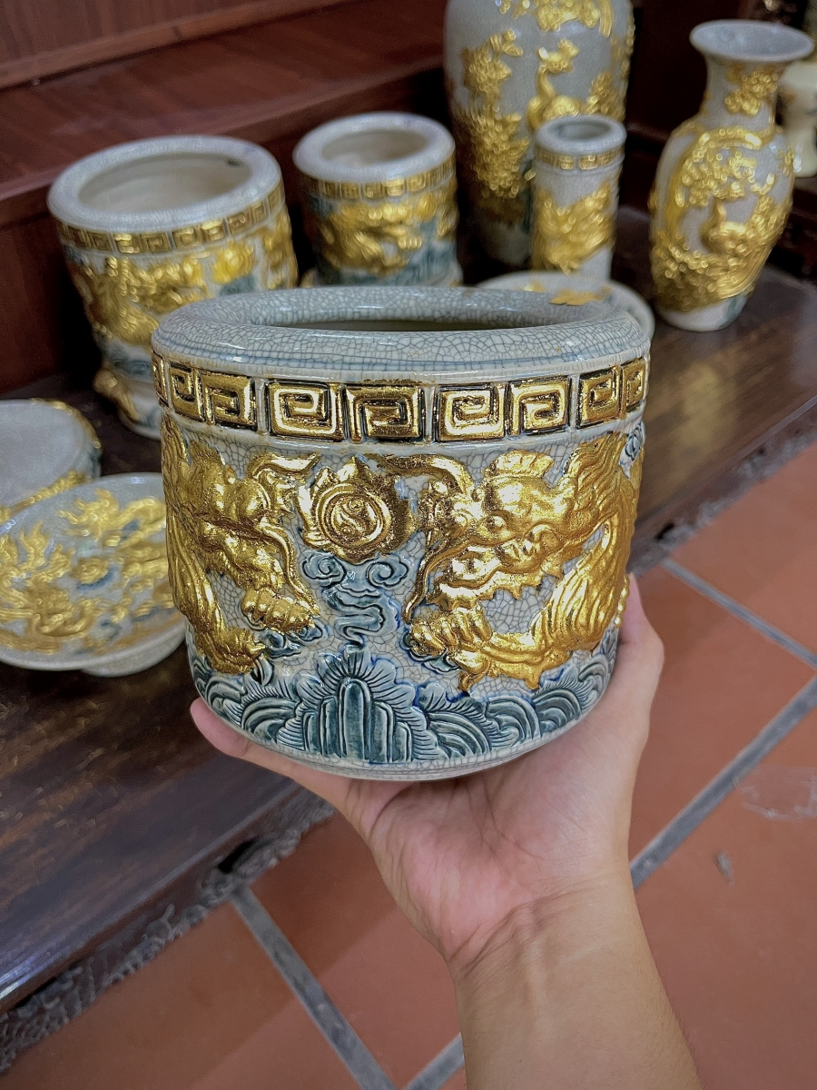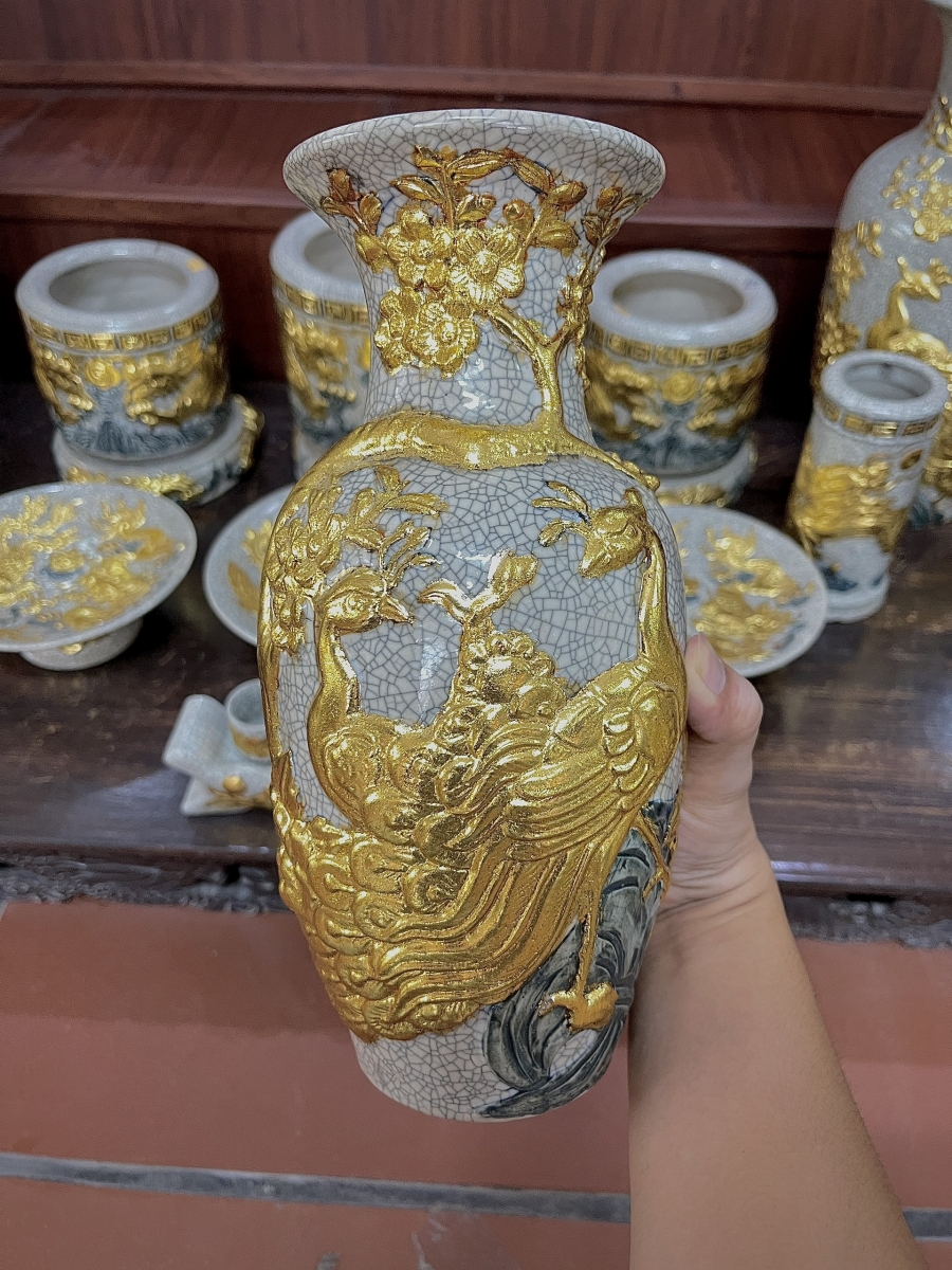 Tham khảo chi tiết mẫu Đồ thờ men Rạn Gạo Nếp đắp nổi trong Bộ