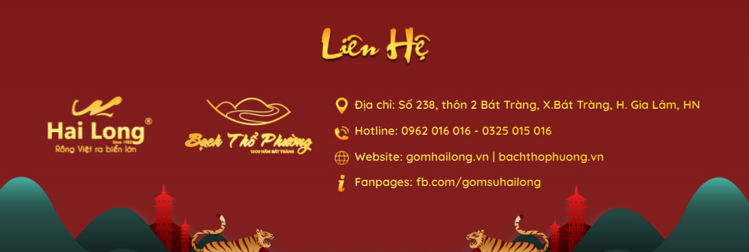 ![]() | Giới Thiệu Gốm Sứ Hải Long - Làng Gốm Sứ Bát TràngKế thừa truyền thống sản xuất gốm sứ lâu đời của dòng họ Phạm Ngũ Chi Bát Tràng. Qua 30 năm, xưởng gốm gia đình đã trở thành một trong những nhà xưởng sản xuất gốm sứ Bát Tràng lớn và uy tín nhất tại Bát Tràng với thương hiệu Gốm sứ Hải Long. Hiện tại chúng tôi có 3 nhà xưởng sản xuất các mặt hàng gốm sứ gia dụng cao cấp, hơn 80 nhân công trong đó có 20 thợ lành nghề kỹ thuật cao, 4 lò ga với công suất hàng nghìn sản phẩm hàng tuần. Cùng với đó là 2 showroom lớn và 3 chi nhánh ở 3 tỉnh, tp lớn: Hà Nội, Đà Nẵng, Hồ Chí Minh... |